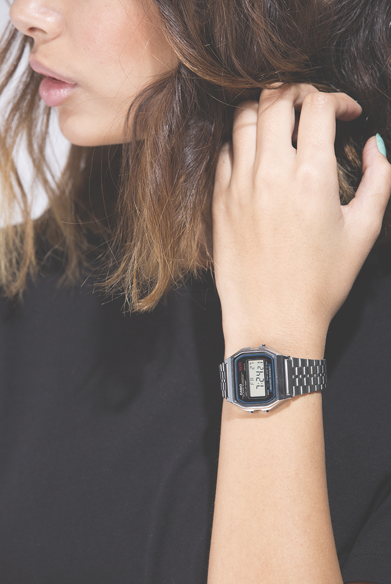 Casio Classic Watch always remains in style. Features a chrome linked strap and clasp closure.